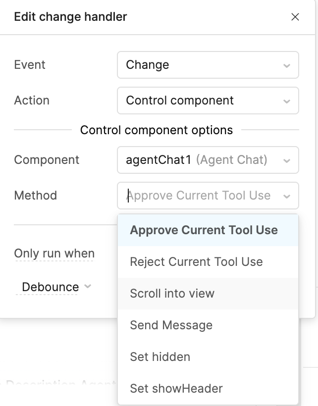 Hey @jcace, I apologize. I misread this. That function was meant for the LLM Chat component and does not work for Agents Chat component. I have filed a feature request internally for you!