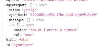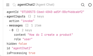 - As designed, if you use agentChat4_query1.agentInputs, it would contain the message, and the