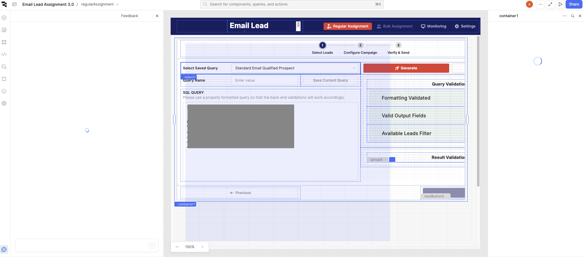 Issue: Everything is just in a loading state, I am unable to select a component to edit properly too.