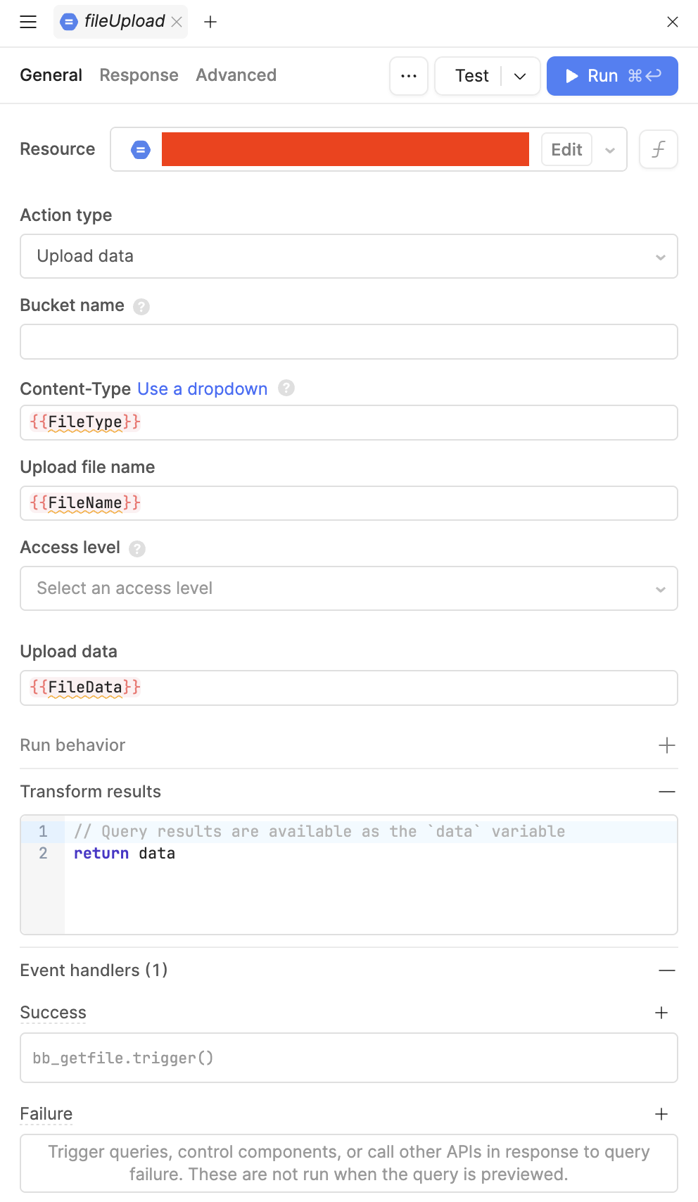 Something that would also be worth trying is to separate some of this from the larger JS query. We think it could be some funky business with await. Since it's hanging on file upload, can you create a button that just runs the file upload and test if it works in editor and preview?