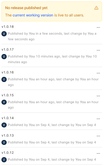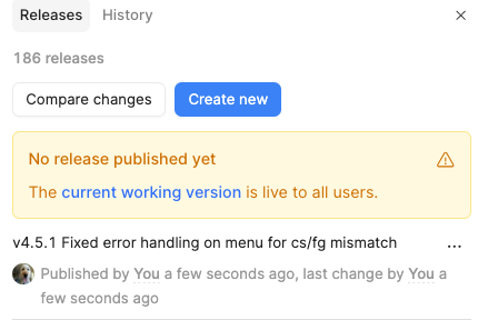 Furthermore, if in this state you try to use the "Latest version" button, it doesn't load the newest version in a new tab (with ?_releaseVersion=latest in the URL), but rather the Published version (so, no version param in the URL).