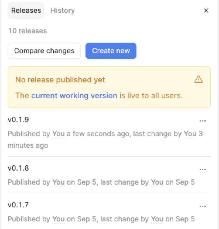 Hey @hansontools - thanks for reaching out. My guess is that you just need to refresh the page, as you shouldn't be seeing that message if the v0.1.9 release was already published. That does seem to be a reproducible bug, though. I'll document it internally and let you know when it's been fixed.