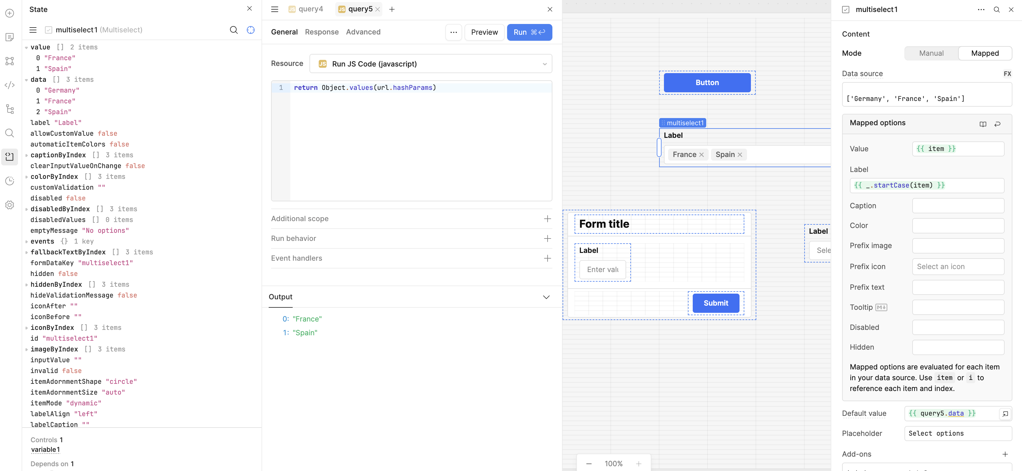Let me chat with our UI team to see if they have any solutions for your use case. Just to clarify, an example of what you are looking to do is have a multiselect display options 'a', 'b' and 'c'. If a user on page 1 selects 'b' and 'c' and then moved to page 2 that then the multiselect should still display all three options and that 'b' and 'c' are still selected. Is that correct?