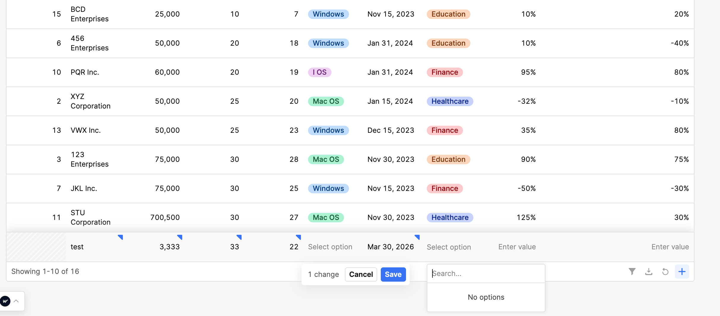 The native dialog for cancelling or saving a new row in the table component blocks editing the very row you have just added. Please can this be fixed?