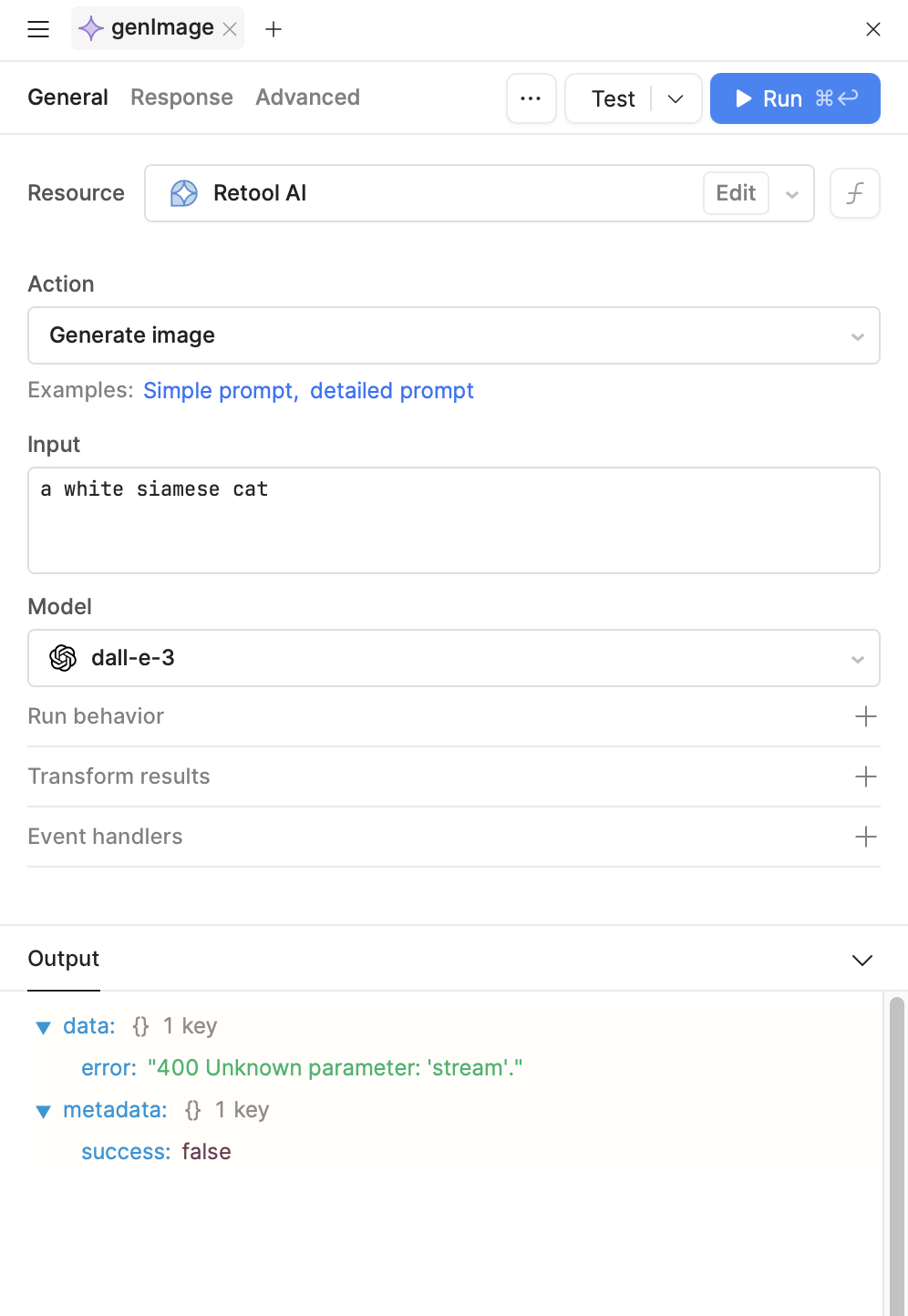 - Followed the directions here: Retool AI image actions | Retool Docs