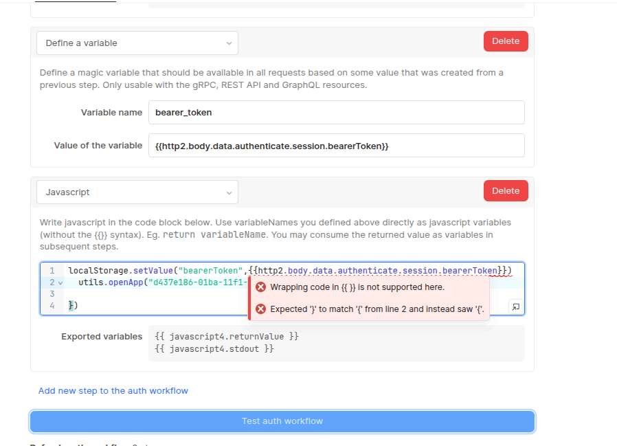 The return of this would be set with the “Define a variable” option as a next step in the Custom Auth flow:
