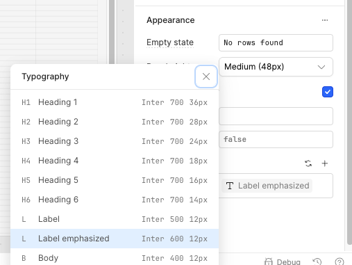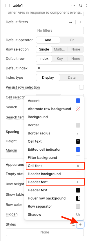 We rolled out Table component font size control a little while ago, and some of you might have already spotted it! You can now choose Styles right from the inspector in your Table component. Just head to Appearance > Styles, then select either Cell font or Header font. From there, you’ll be able to pick from a list of font sizes. Check out these screenshots for guidance!