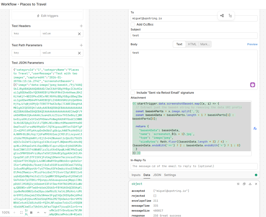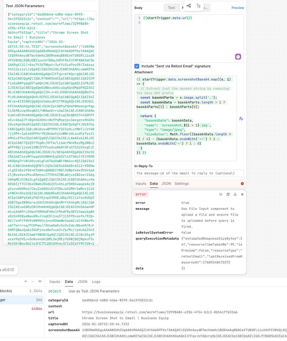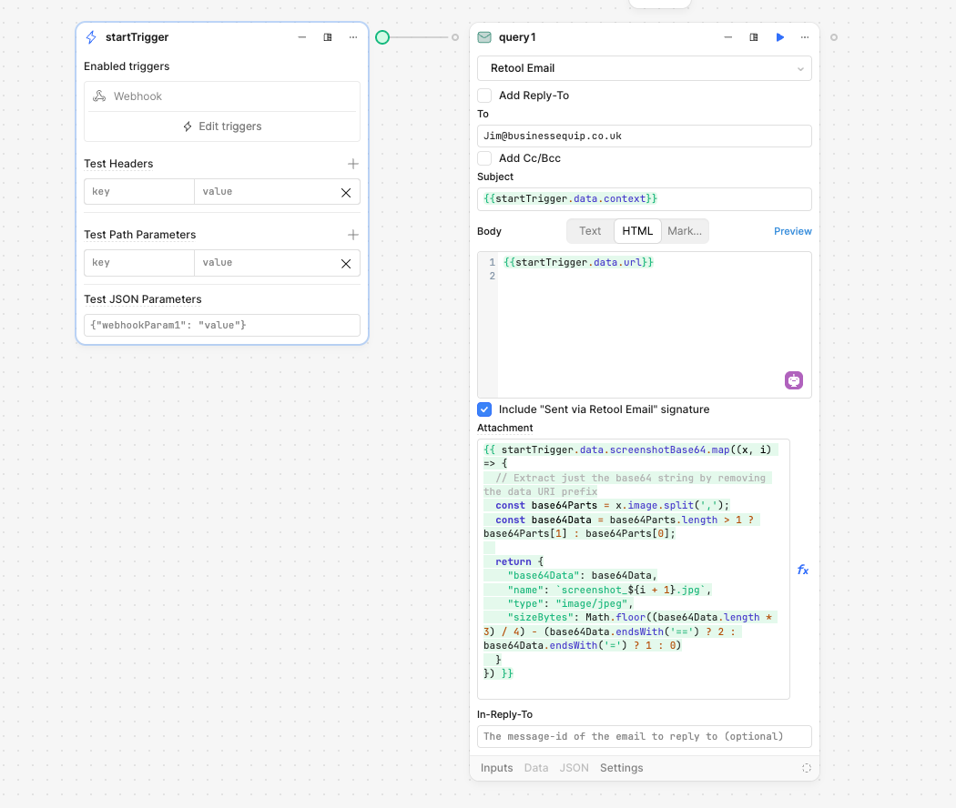 Hi Thanks for this, got it up and running I have made a wor flow to email me the png. However I am adding the {{startTrigger.data.screenshotBase64}} to the body of the email and I am just getting text in the email, how do I make it add it as a PNG?