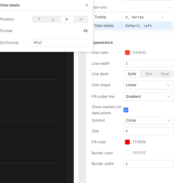 Basically if there are a lot of points on a line chart in a small area, it becomes congested, I just need a way of specifying which labels are on, or at least let me turn labels on and off for a line with a var. Here's an example of what I mean. I mean it would be really nice if the retool component auto handeled this but I understand that w/ such a complex component not everything can be supported. I would just like the option of doing it myself w/ js