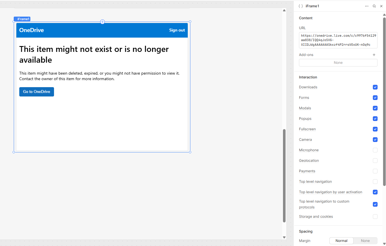 I’m trying to embed a Microsoft Word file from OneDrive into an iFrame component in Retool. I used the embed code from OneDrive.