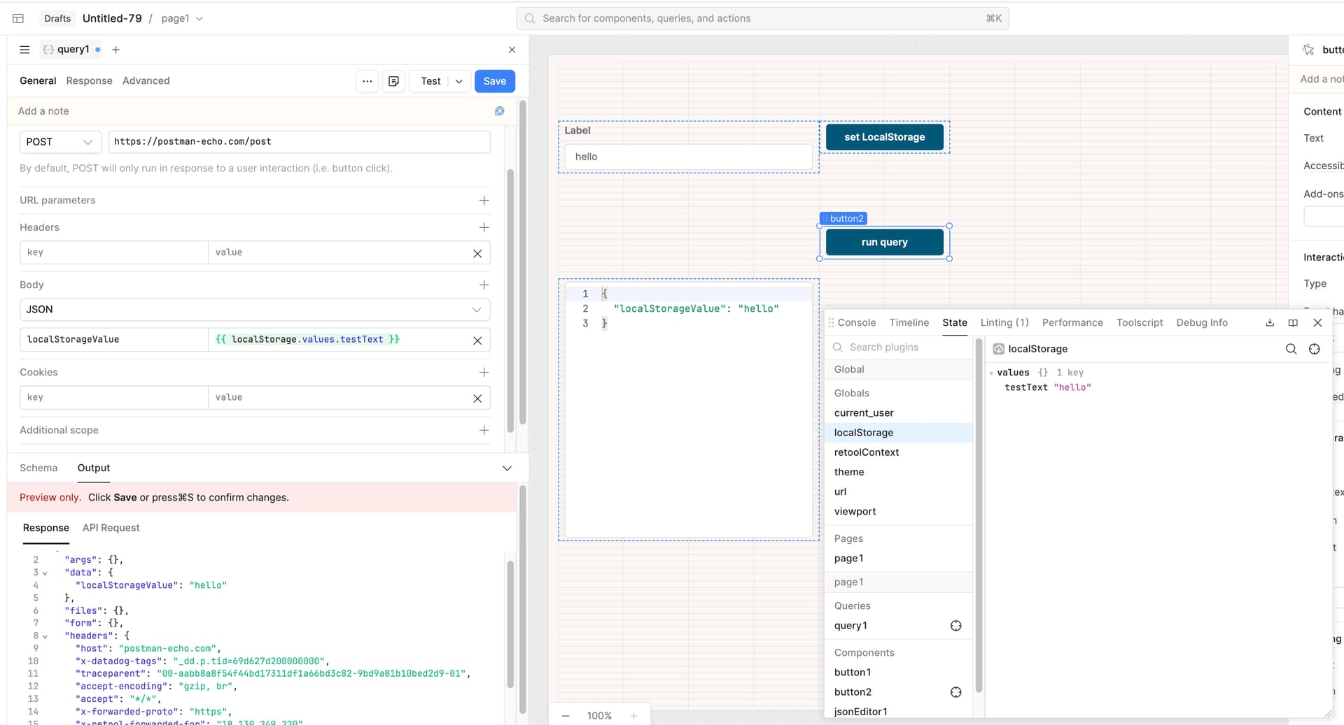 I’ve reproduced the behaviour - this affects queries that run on page load (either set to run automatically or “Run on page load” is enabled in the Advanced query settings). It looks like a timing issue with how Retool initialises localStorage relative to when page load queries fire. When queries are triggered manually a moment later, localStorage is ready and the values pass through correctly.