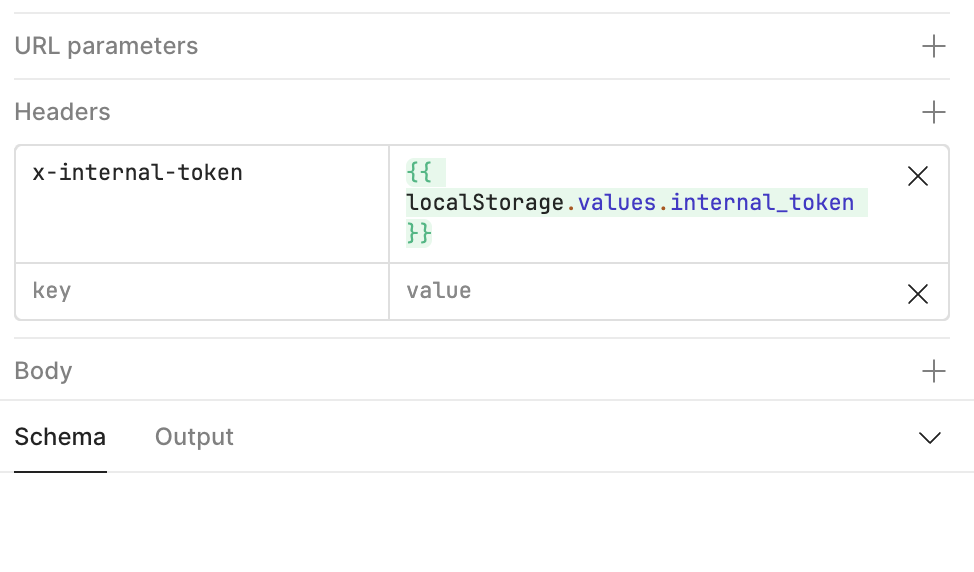 My goal: I used {{localStorage.values.token}} for passing token in headers but today it stopped working, now i fixed it temporarily in some apps by returning token from transformer