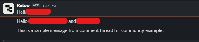On the Retool side, add an event handler to the Comment Thread component for the Submit event, and trigger your Slack query from there. In that query, parse the comment text, replace the mentions with the proper <@SlackID> format, and send it to Slack.