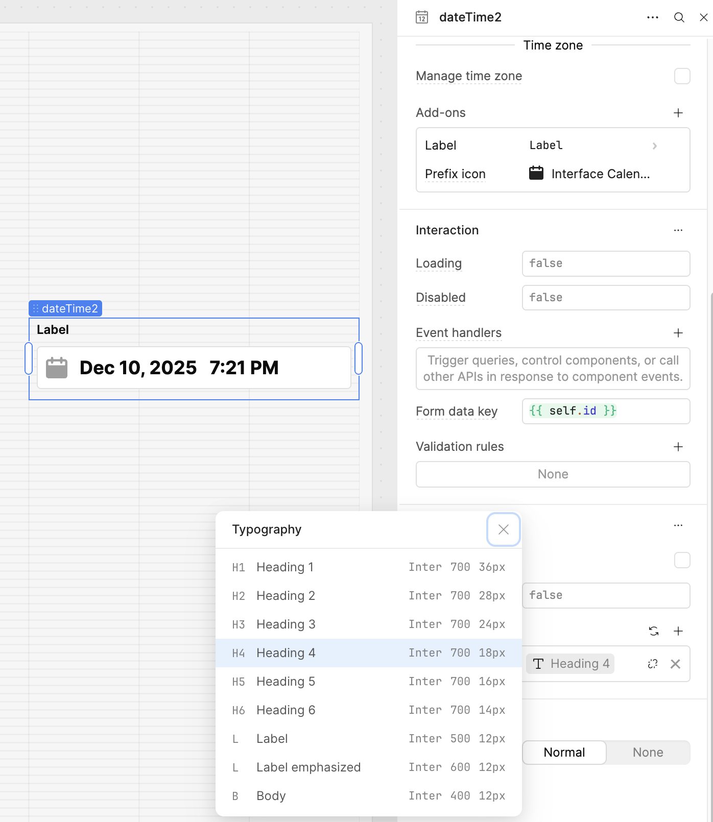 Hey @pmadden and @Vishal1620, good news! Not sure if you noticed this, but if you go to Inspect on the Date Time component, then click the plus button in Styles, then Input font. (screenshot 1)