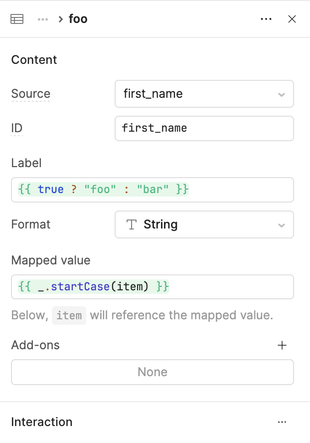 When I toggle between true and false, the column header instantly switches between “foo” and “bar” — exactly as expected. ![]()