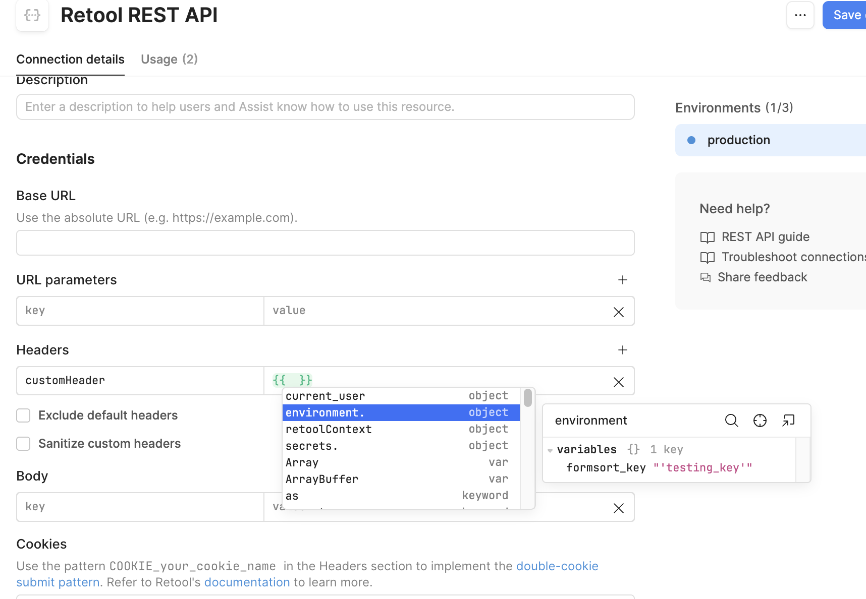 My goal: I have a REST API Resource i am using to hit against my service. I am currently creating a Module where you can select an instance_id of sorts, which I am looking to add a header to the Resource. An example of this would be the header X-Instance-Id: <your_instance_id_hash>. I know I can add it dynamically with the following UI: