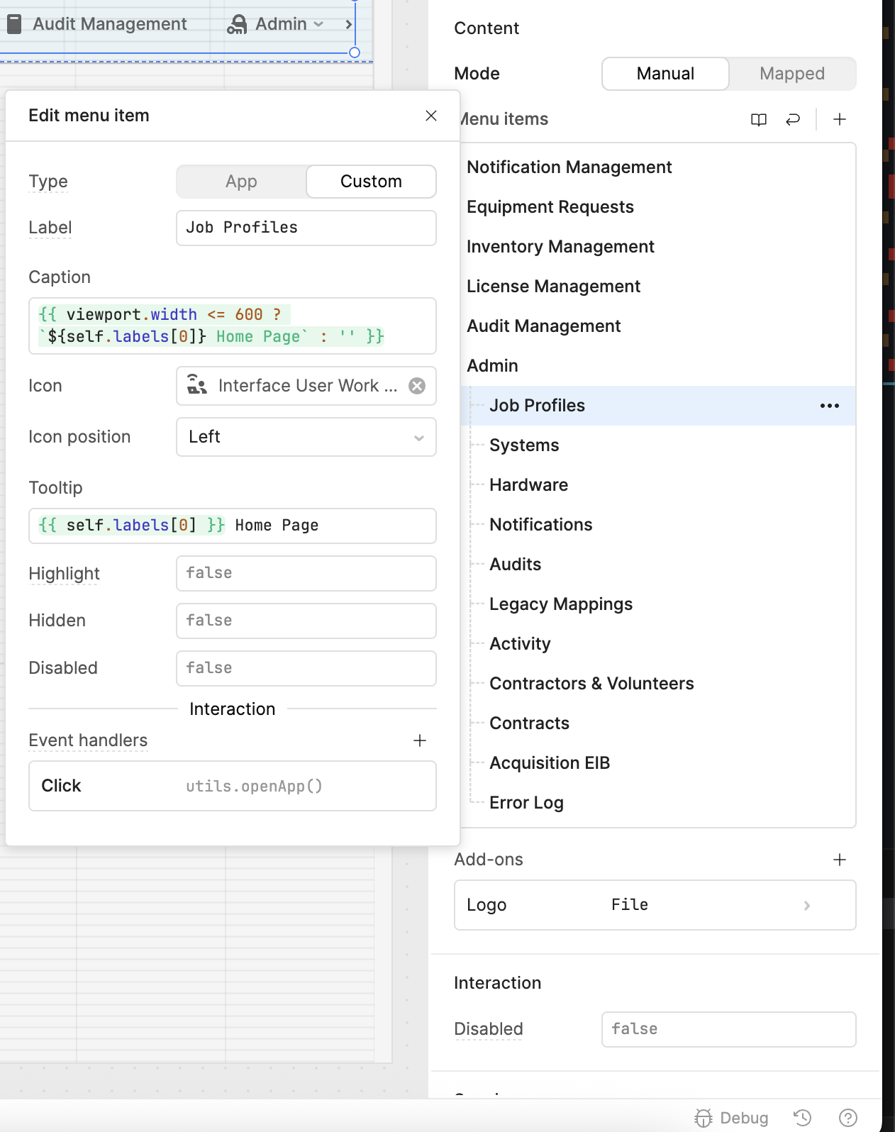 This is what I, and a handful of others can see, which are all the correct options that all others should see that use the apps that contain this nav module: