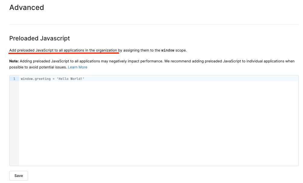 Another option is to define it in Preloaded JavaScript instead. You can find it under Settings, then Advanced settings, then Preloaded JavaScript. Screenshot below. Let me know if this is helpful at all!