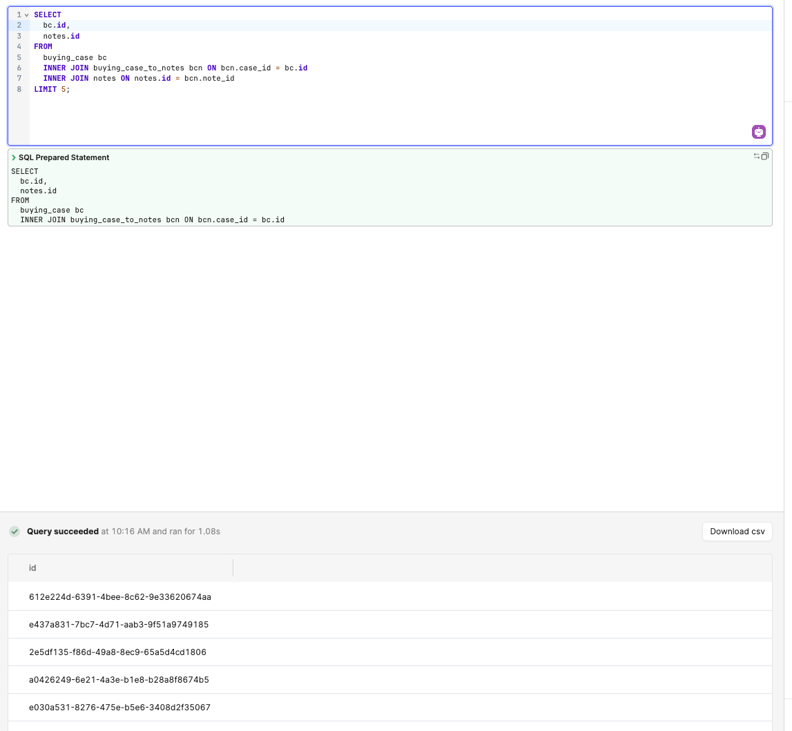 Steps I've taken to troubleshoot: I was able to work around this by explicitly aliasing one of the fields to have a unique name (<tableX>.id AS <x_id>)