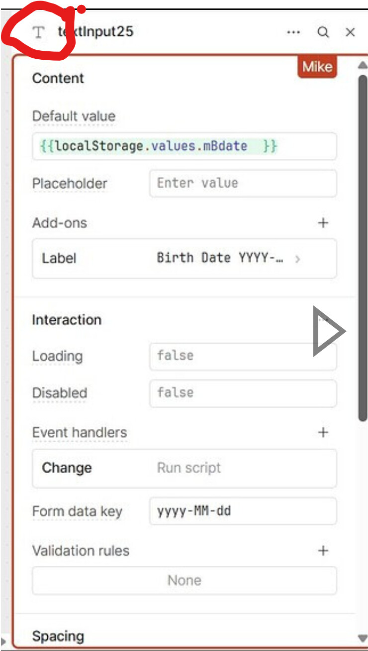 is Retool telling you the component you have selected is a Text Input.