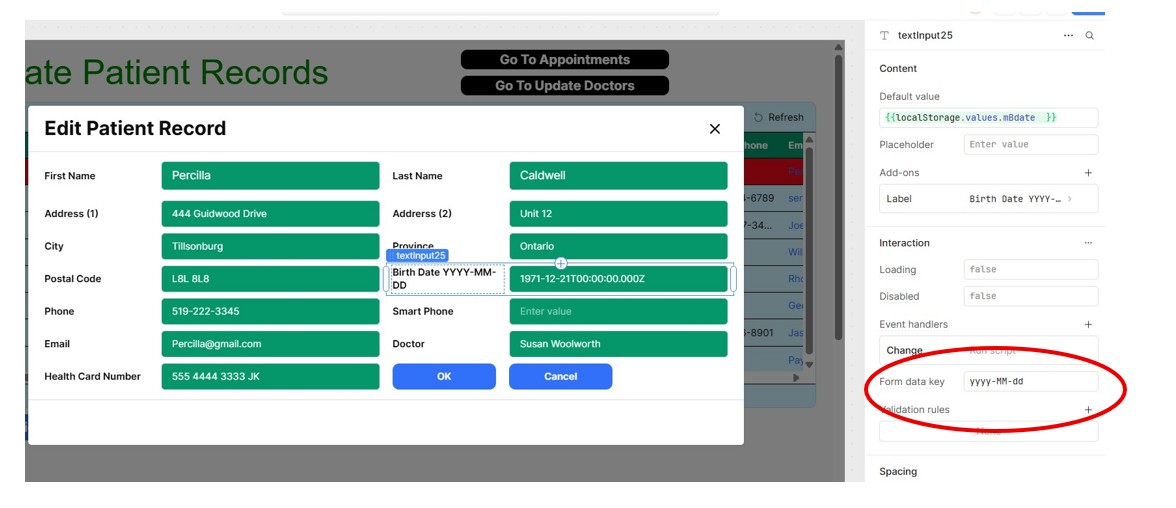 I have one screen called "Add Patient" where the birthdate is entered in the format of "YYYY-MM-DD".