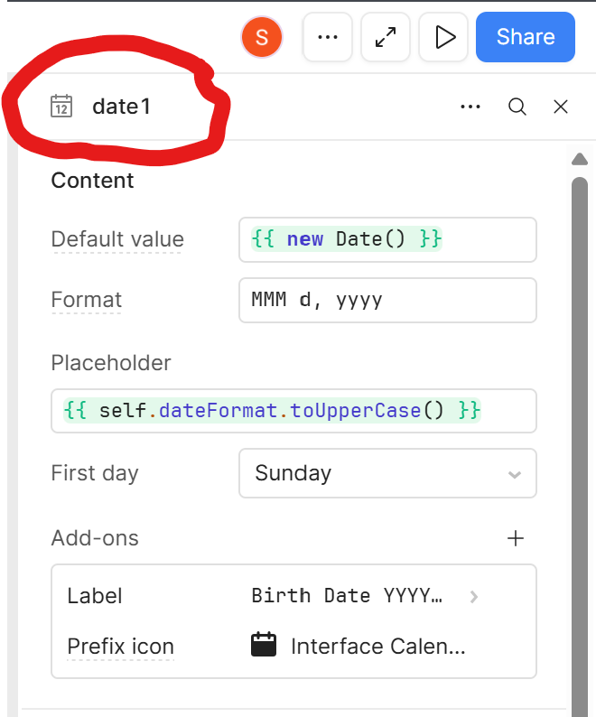 Maybe I'm just not understanding correctly. Why do you think those are Date Components when the Retool UI is informing you otherwise? Is there a reason you don't want to drag a new Date Component to your screen to check if there is a difference?
