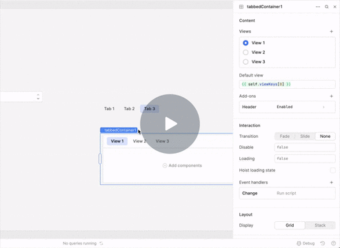 There is currently no way to handle event(s) occurring from switching tabs (Tabs Component/Tabbed Container). As it is, if I have data I want to put off loading something until a tab is selected there is no way to do this.