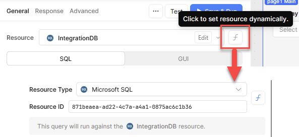 One thing you can consider instead is to make separate resources for each of your DB connections so that the schema can be controlled by the resource in your forms. You should be able to grab the resource ids from the DB connections and then use those for the Query Resource:
