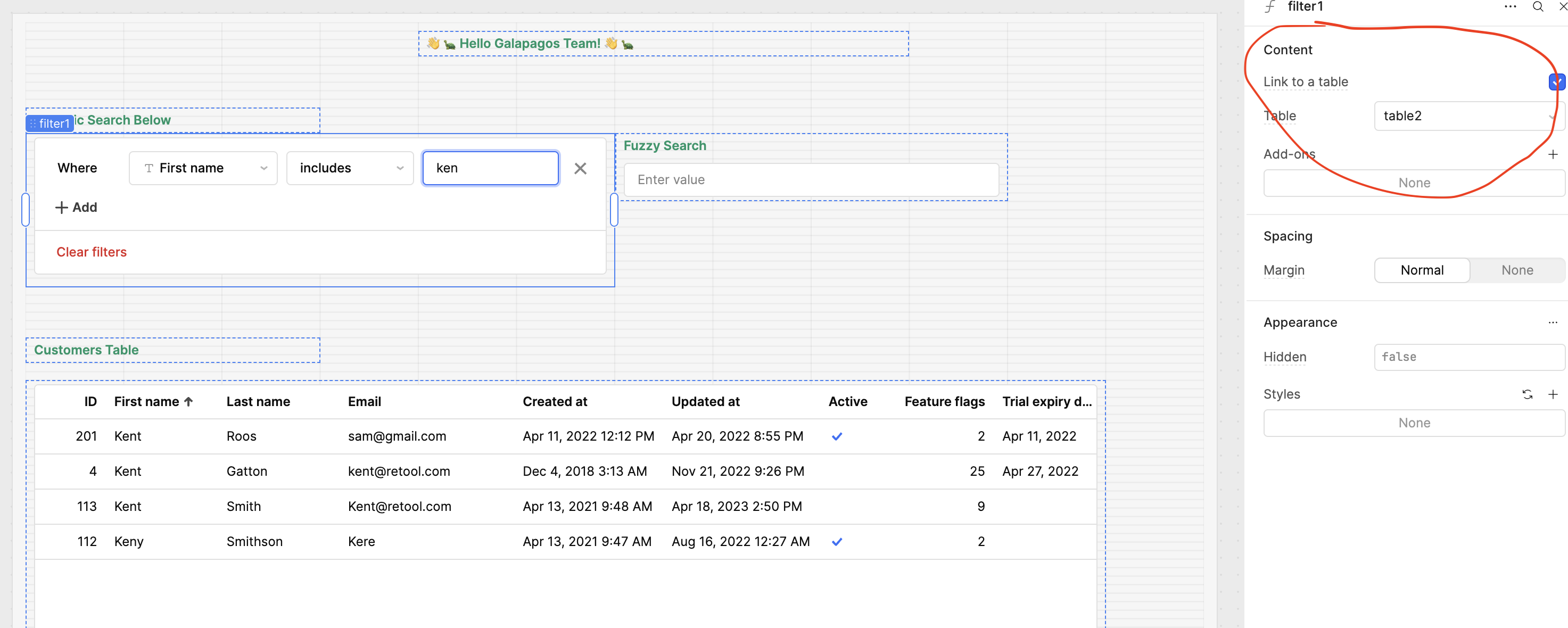 Another great option would be using the Filter component, which has a nice option to link it with a table and allow for column and other specificity as well!