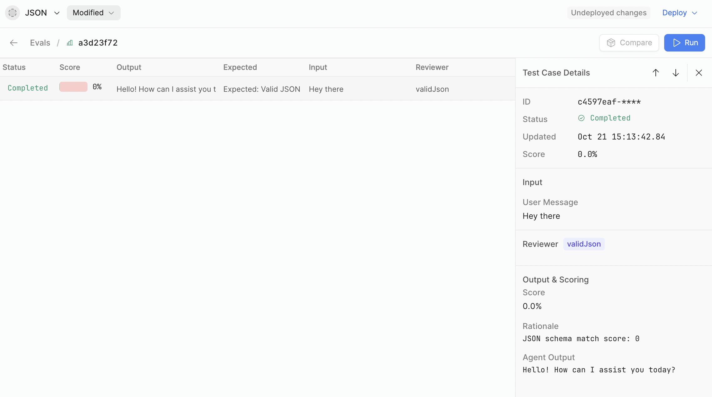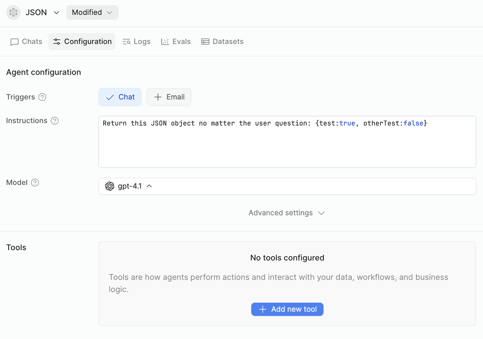 And to complete my test session, I’ve tried also giving the same instructions to an Assistant/User message in the Dataset for Eval as context, again, with no effect.