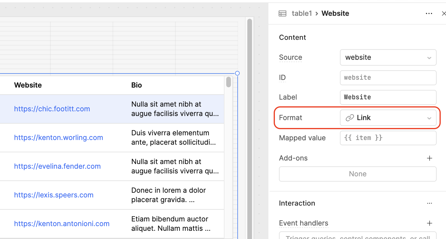 it's not quite clear where the website you want is coming from, but if it is in the same table, you could substitute "google.com" for "currentRow.XXXX" to make it dynamic