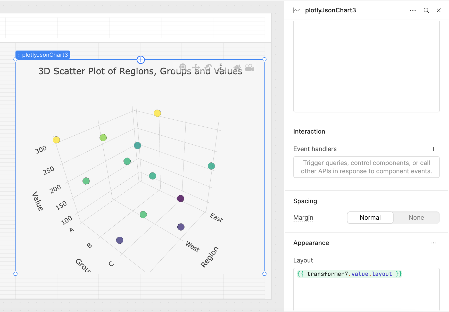 To address this, I modified my transformer to output a 3D chart structure instead of a 2D chart. This ensures that the toolbar is visible with all its default options. Below is the transformer code I used for demonstration purposes: