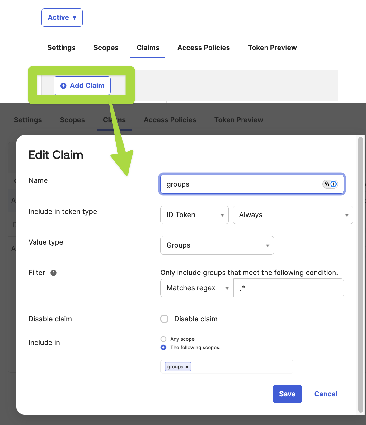 6. Add an 'OpenID Token' to your Okta OIDC Application: Use your 'Claim' name from step-3 here.
