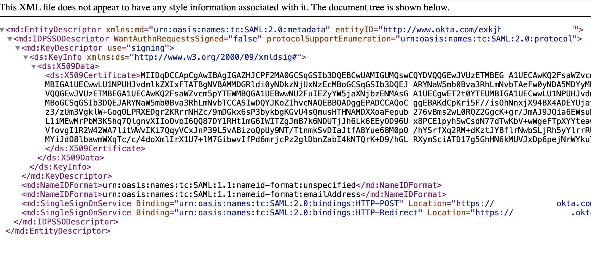 6. Your IdP metadata should look something like this:
