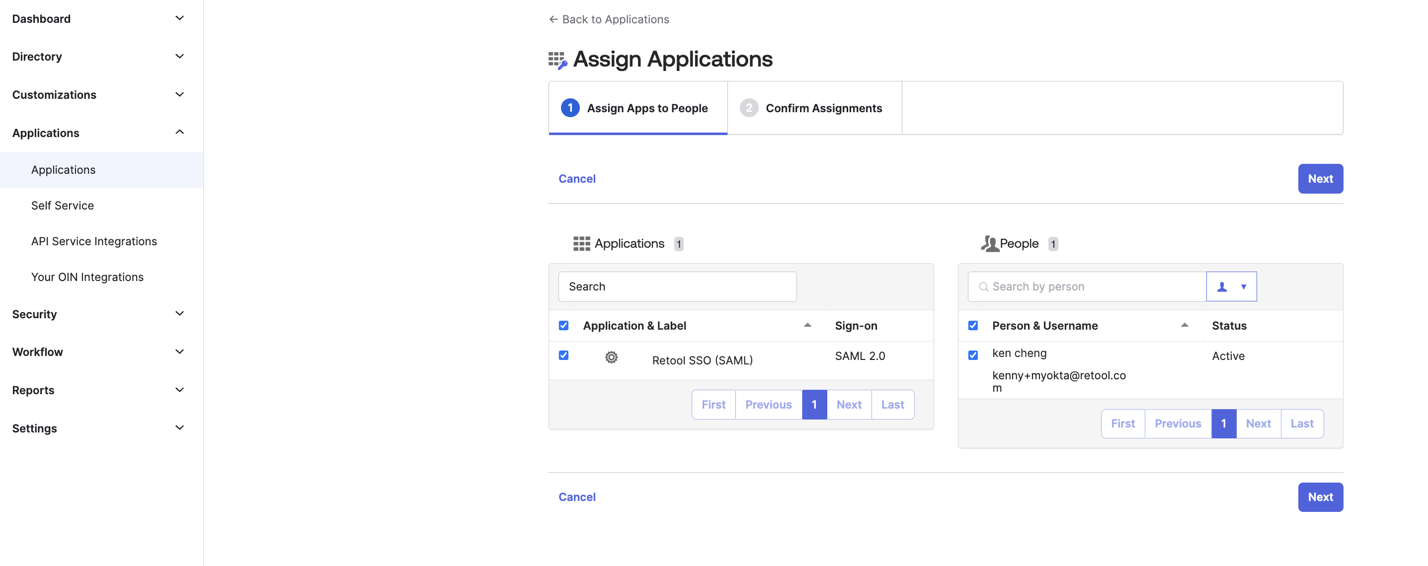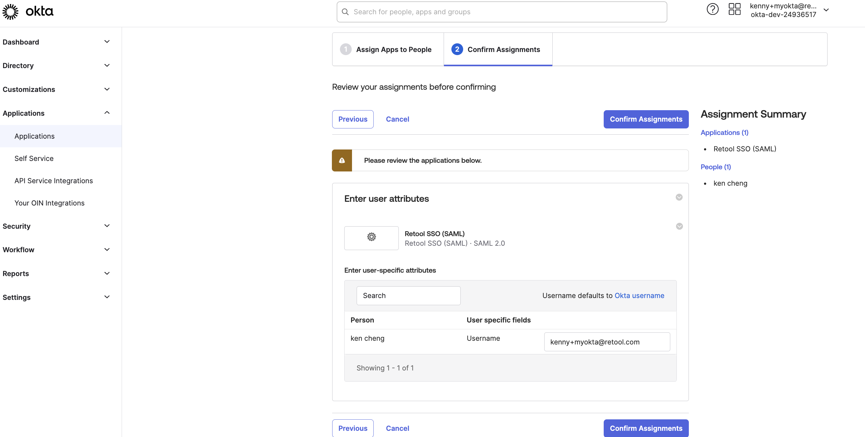 2. Assign your Okta Application to your User