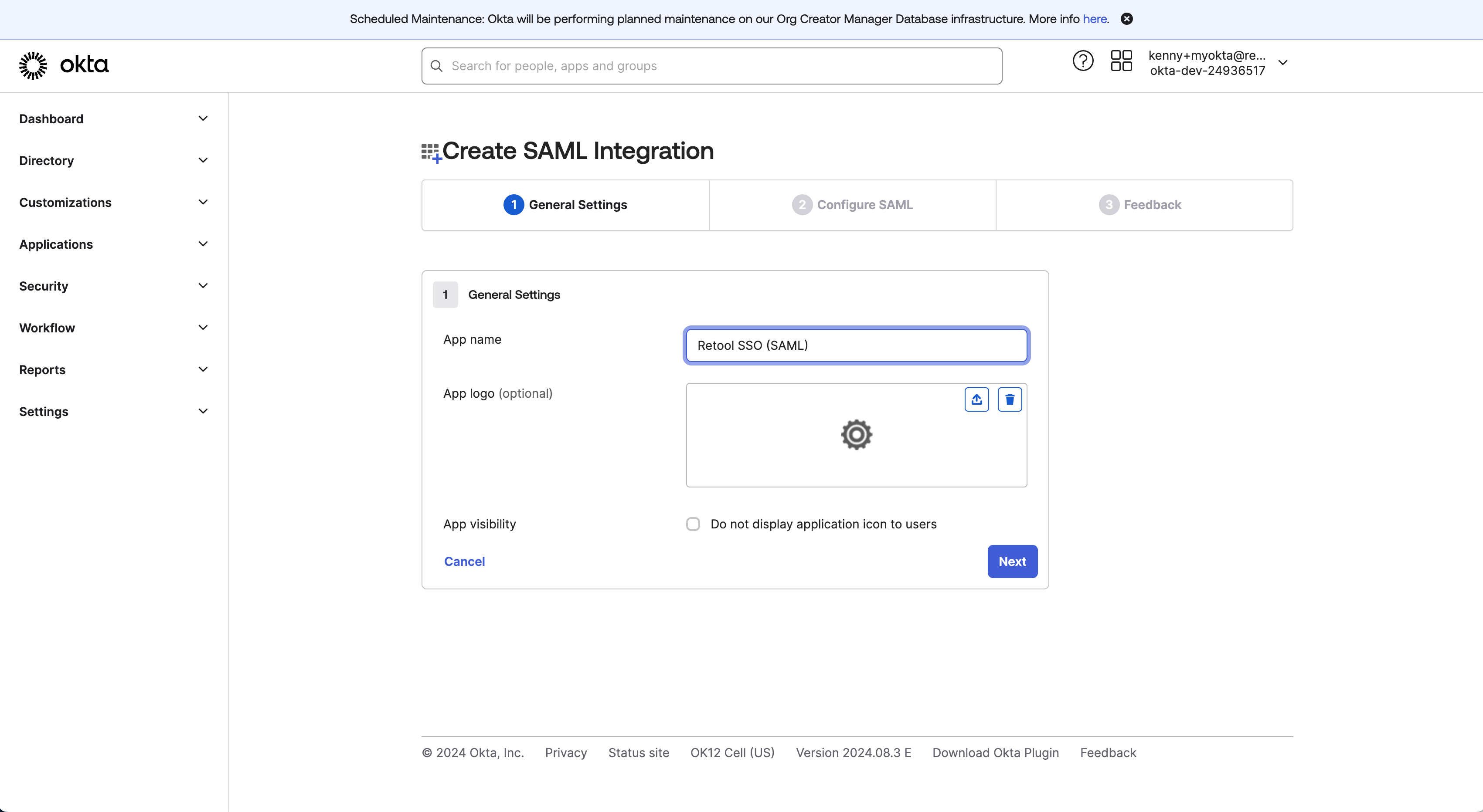 1. Create a SAML 2.0 app in Okta