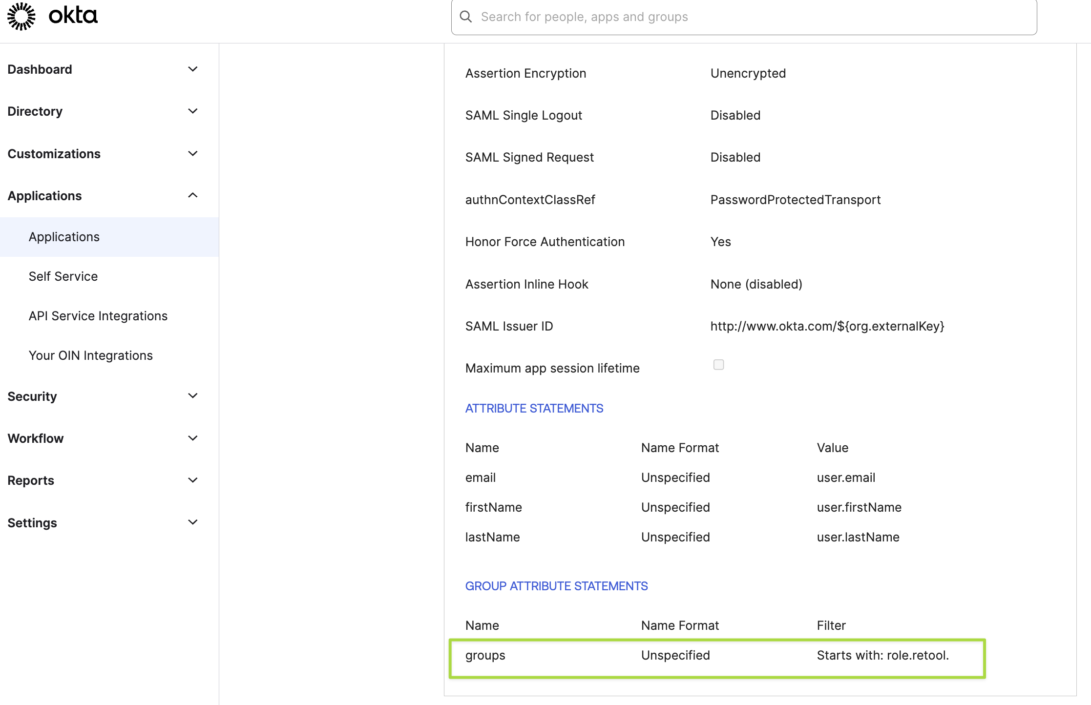 5. Set your Okta Application's Group Attribute with your Group Name