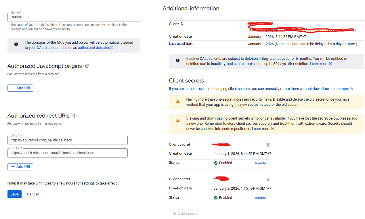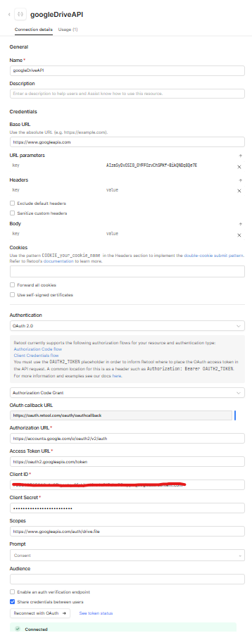 After setting this, click “Reconnect with OAuth” and confirm the resource shows Connected.