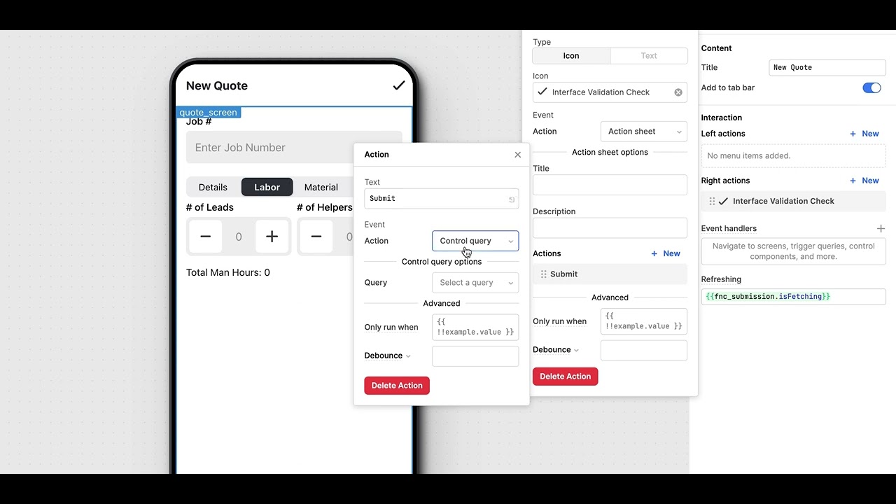 Each time the mobile action sheet configuration pane opens if i click on it it disappears. I am no able to use it. See video below: