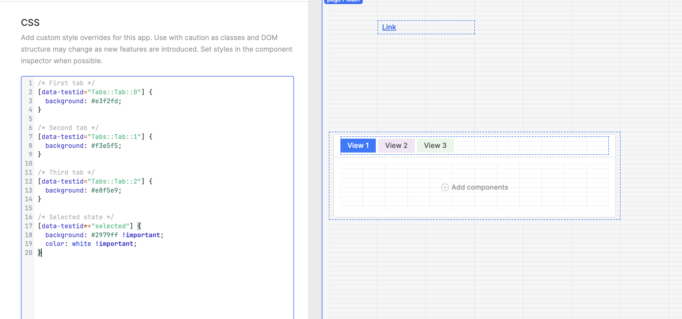 In short, there should be an ID that you can find for most elements in the Retool UI that you can then apply custom styling to via CSS. I tried this on my own and I was able to change the background color but someone more fluent in CSS might know of some better ways to make it more visually as you shown in your mockup.