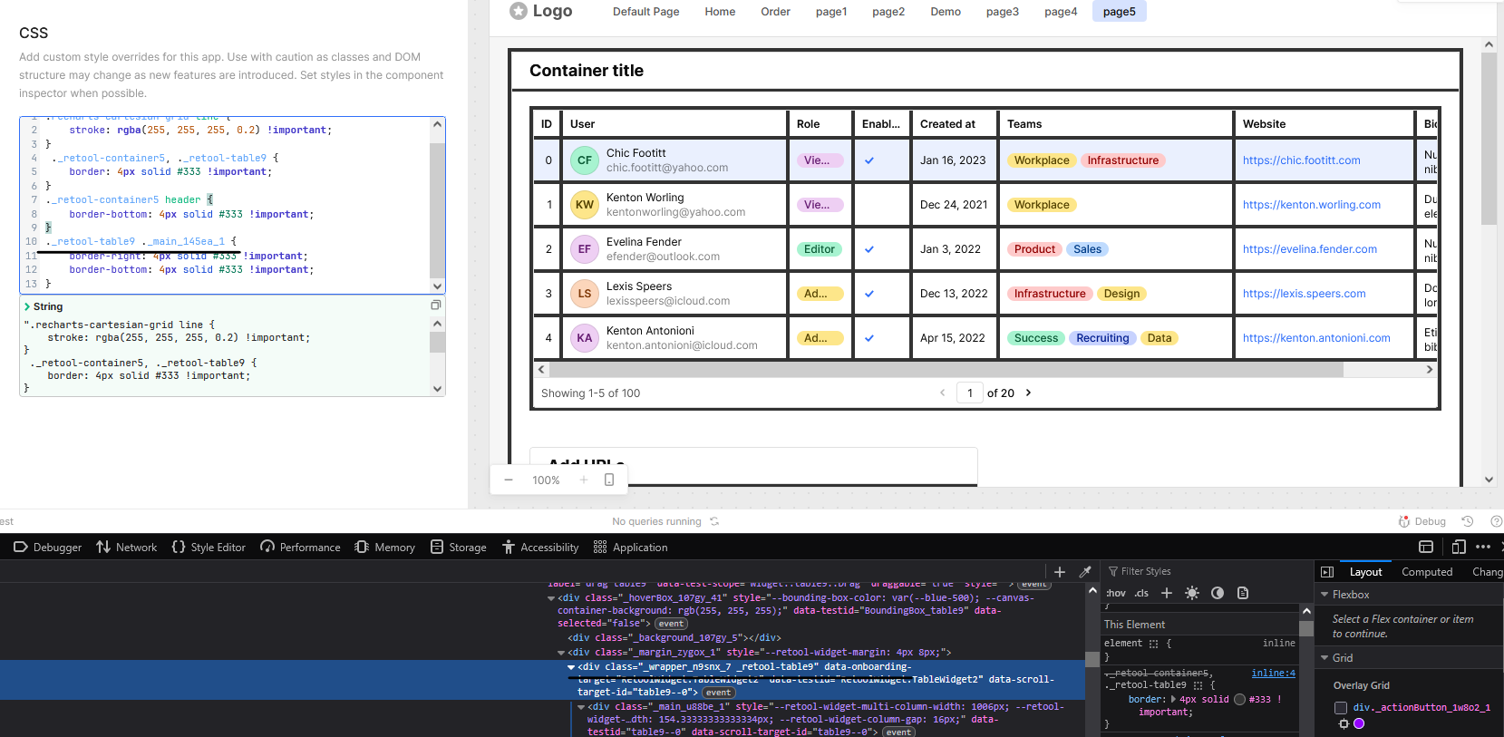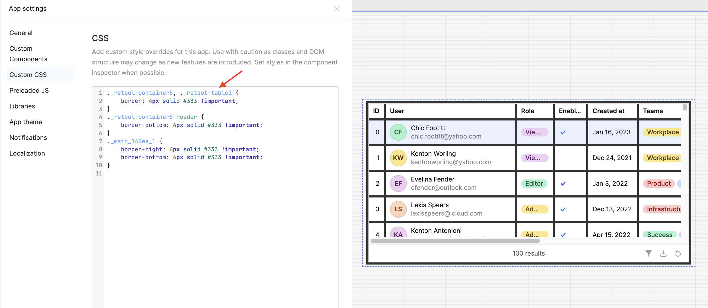 By default, Retool does not provide a built-in option to adjust the border thickness of table cells or containers. However, you can achieve this by applying custom CSS. Below is the CSS I’ve used to increase the border thickness: