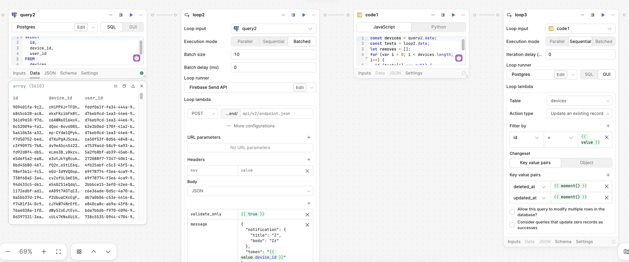 Issue: Internal Error running a block: Error parsing response body. Loop throws an error when executing a sequential loop with Firebase Lambda. Works in parallel loops, but I have to match the device ID array, so a sequential loop is needed, I believe.