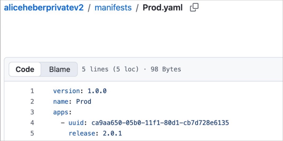 - In the Release tab, you can then set which release version each manifest should point to
