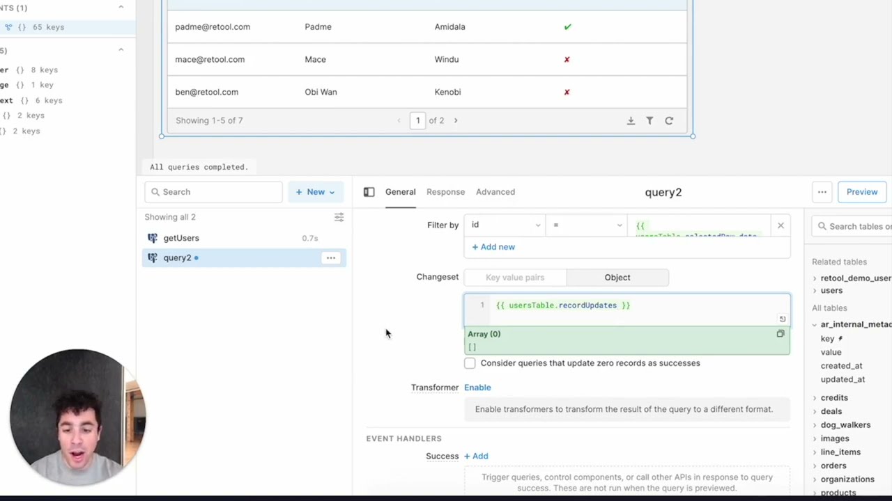 Now I get no error, but as soon as I tab off an edited cell, I get an infinite loop of refreshing of the table. It does seem like the data is being saved now though (even multiple edited rows!), but this refresh loop is a major problem.