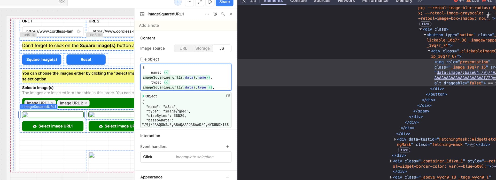 When accessing fileInput.data.type via {{ }} interpolation, the MIME type is truncated to image/ - the subtype (e.g. png, jpeg) is missing. The base64 data is correct and the image renders fine when the type is manually corrected in DevTools.