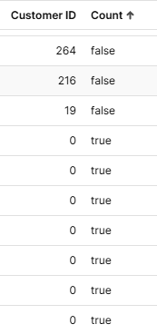 This will return, for each row, the correspondent order_count. Afterwards, you can change the column type to boolean and in mapped value write something like: