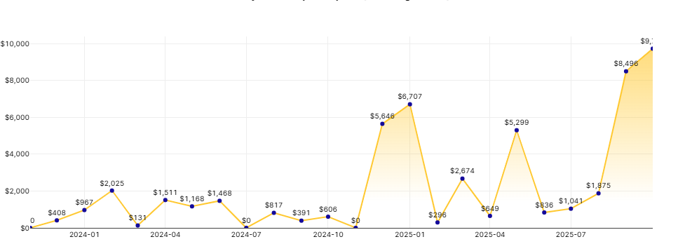 I have a line chart with labels for the points. The first and last points are displaying as truncated. Setting the margin on or off makes no difference. The final point should display $2,973