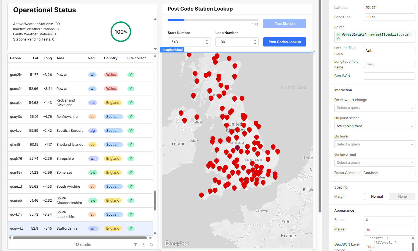Hi @Footsore, I looked into this and tried to recreate the bug, and ultimately found out that using non-default field names causes the selectPoint function to not work. So if you go back to your original app and change the field names to "latitude" and "longitude", it should work.