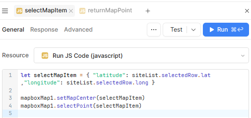 I have the following code and it is triggered by row selection in the table. It runs and the map is centered where I would expect. But the point is not highlighted in dark red.