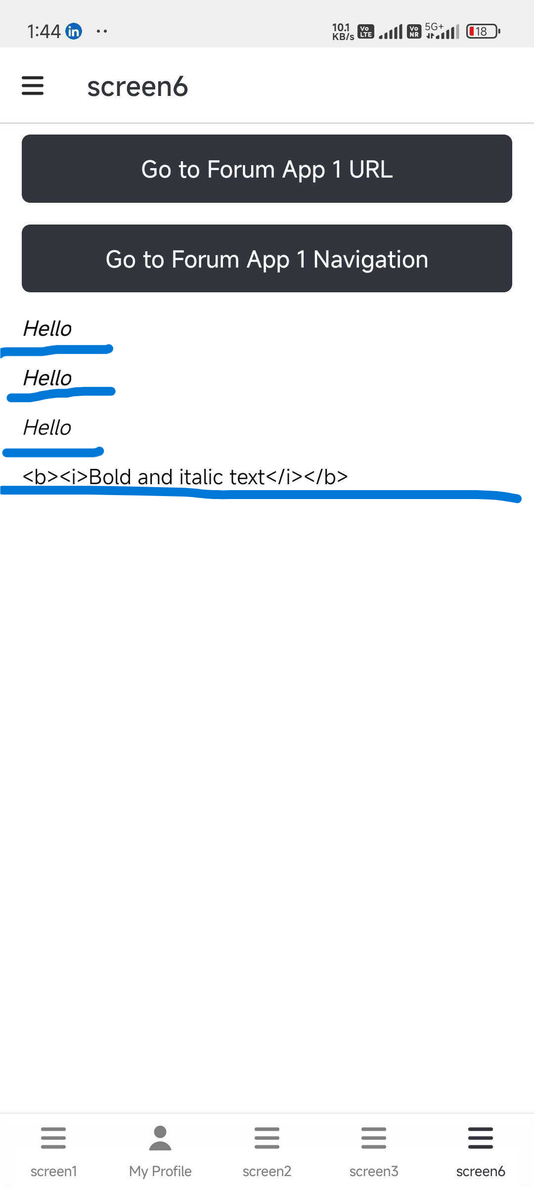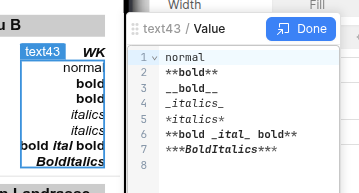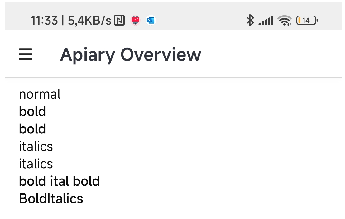 When I want to have a text appear in bold italics, the markdown code ("") works fine in the Andorid-emulator in the browser, but on the mobile phone, '' is displayed as bold without italics.